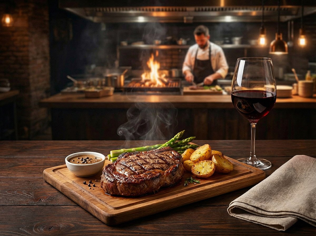 Stejk je jedním z nejstarších pokrmů. Opečený kus syrového masa si dopřávali naši předkové od dob, kdy objevili oheň. A od těch dob se, kromě kultury stolování, moc nezměnilo. Stejk si, kromě mamuta, můžeme dát prakticky z jakéhokoliv zvířete: od drůbeže, přes zvěřinu, ryby až po takovou exotiku, jako je třeba krokodýl. Králem stejků je ale hovězí a připravit ho dobře, v tom je přece jen trochu víc umu, než jen hodit kus masa na pánev. Správní kuchaři to vědí a věnují masu hlavně před jeho zpracováním takovou péči, aby pak na talíři bylo šťavnaté, propečené přesně podle vašich přání a aby se doslova rozplývalo na jazyku. Kde jsou takoví kuchaři v Olomouci? Na to odpoví následující text.